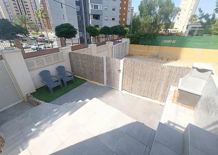 Die Villa Apartamento Con Terreno Privado - A 800M De Playa Poniente hat einen Wasserpark, eine Sonnenterrasse und eine Picknick-Ecke, dank denen sie vollen Komfort bietet. Strand Mal Pas ist 3 km entfernt und Naturpark Acqua ist in einer 4 km Entfernung von der Unterkunft.